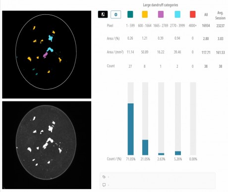 頭皮屑測試儀Dandruff Meter DA20為人們研究頭皮屑提供了一種簡單快速的分析方法。頭發護理是化妝品行業的一個大的領域,分析護發產品的去屑功效是研究護發產品過程中非常重要的一個方面,通過測試使用護發去屑產品前后頭皮屑的數量變化,可以為護發、去屑產品的研制提供一個科學的依據。