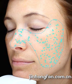 VISIA面部圖像分析儀可以得到如下的八幅面部圖像。其中標準白光四幅,可定量分析面部 的斑點,毛孔,皺紋和平滑度。UV光圖像二幅,可以定量分析面部下層的紫斑和卟啉。交叉 偏振光圖像兩幅,可以定量分析面部皮膚下層的紅區和褐色斑狀況。